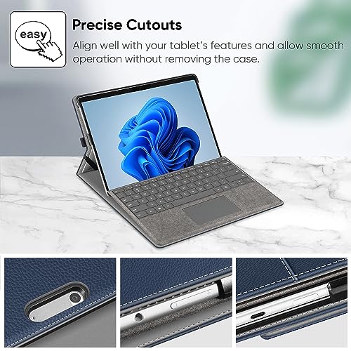 FINTIE Custodia per Microsoft Surface Pro 8 13 Pollici 2021 - [Multi-angli] Portfolio Business Cover con Tasca e Stylus Holder, Compatibile con Tastiera Type, Indigo/Nero