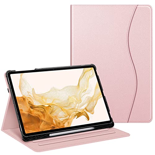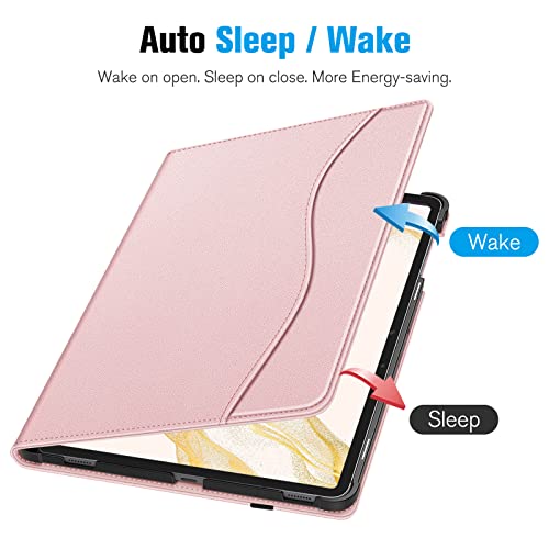 FINTIE Custodia per Samsung Galaxy Tab S8 Plus 2022/S7 FE 2021/S7 Plus 2020 12.4 Pollici con S Pen Holder, [Multi-angli] Slim Fit Stand Cover Case con Tasca Auto Sveglia/Sonno, Oro Rosa