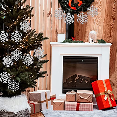 Fiocchi di Neve Decorativi Natale, 24 Pezzi Glitter Decorazioni a Fiocco di Neve Fiocchi di Neve da Appendere Albero di Natale Decorazioni Fiocchi Neve, Per Decorazione Natale (Argento)
