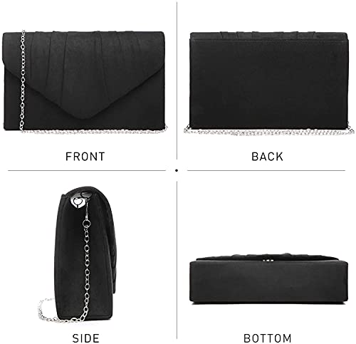 Fioeyr Pochette da donna in raso scamosciato di velluto pieghettato, per feste, balli, pochette da sera, Nero