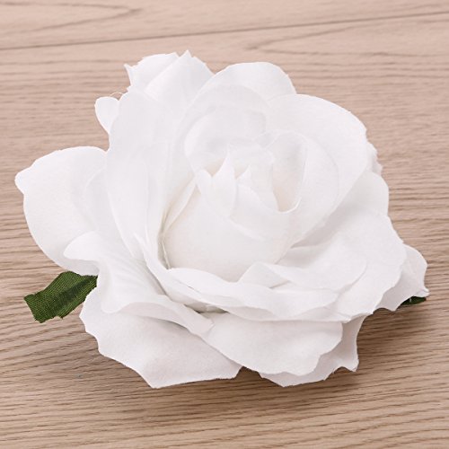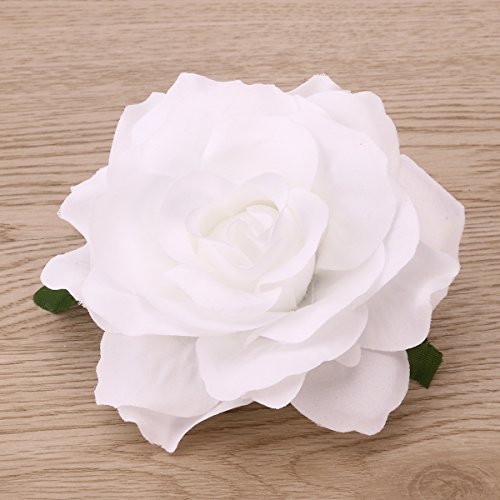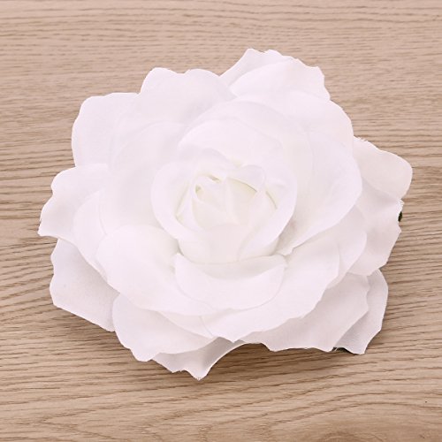 2 in 1 fiore artificiale grande rosa fiore tornante clip di capelli spilla fiore per le donne partito (bianco)