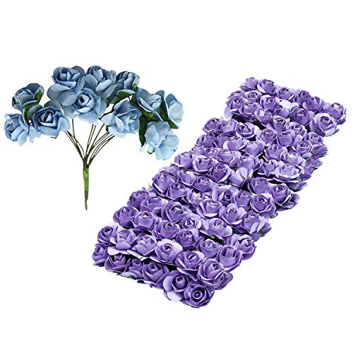 Fiore di Simulazione, 288 Pezzi di Carta Artificiale con Fiori di Rosa, Decorazioni Artigianali per Matrimoni, 144 Pezzi Blu Chiaro e 144 Pezzi Viola Scuro