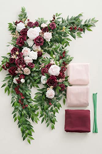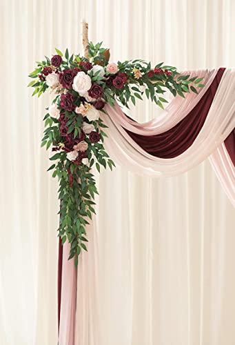 ❤ 【Dimensioni ideali】 La dimensione delle ghirlande di fiori a sinistra è di circa 100 cm x 50 cm (39,3 pollici x 19,7 pollici) e le ghirlande di fiori a destra sono di circa 60 cm (23,6 pollici) e il tessuto drappeggiato è lungo 26,2 piedi e 2,5 piedi Largo.