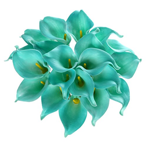 Fiori di calla artificiali in poliuretano, di consistenza naturale al tatto, adatti per bouquet e decorazioni per feste nuziali, Sky Blue, 10 pezzi