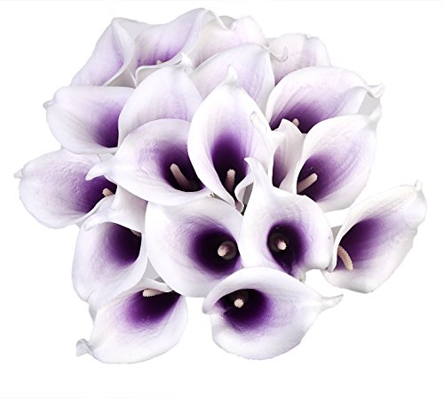 Fiori di calla artificiali in poliuretano, di consistenza naturale al tatto, adatti per bouquet e decorazioni per feste nuziali, Purple white, 20 Pezzi