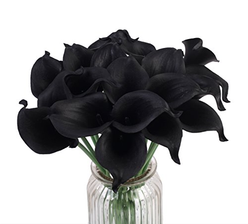 Fiori di calla artificiali in poliuretano, di consistenza naturale al tatto, adatti per bouquet e decorazioni per feste nuziali, Black, 10 pezzi