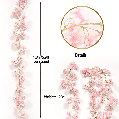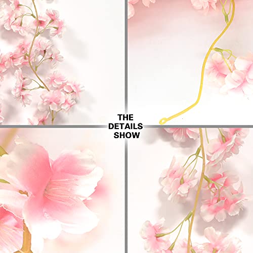 Fiori di Ciliegio Finti, Fiori di Ciliegio in Seta Artificiale, Ghirlanda di Fiori di Seta Sakura, Adatto Per Pareti di Giardini, Feste, Matrimoni In Famiglia, Decorazioni Per Ufficio 2 Pezzi (Rosa)