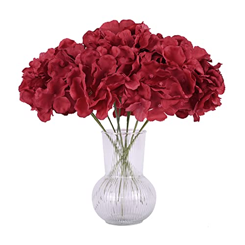 Fiori di ortensia artificiali in seta, 10 pezzi, colore rosso, realistici al tatto, ideali per matrimoni, decorazioni per casa, hotel, ufficio, festa della mamma
