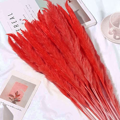 Fiori Secchi Decorativi 30Pz Piume Decorative 44Cm Pampas Decorative, Erba Della Pampas, Erba Di Pampa Essiccata, Piume Decorative Lunghe Per Decorazioni Floreali Per La Casa, (Rosso)
