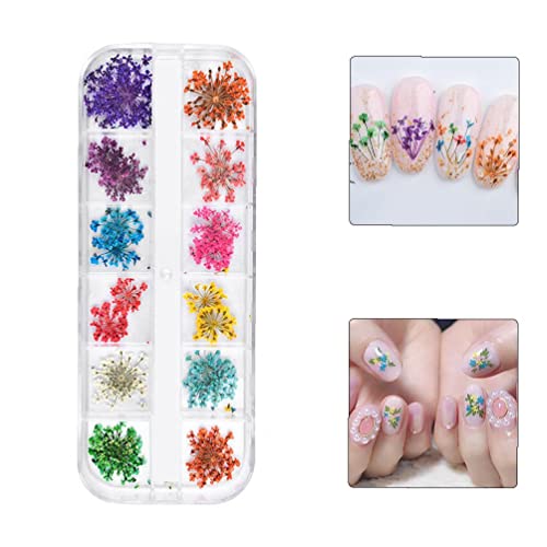 I fiori secchi per unghie, nail art naturale 12 colori Gypsophila fiori 3d colorati chiodi decalcomanici decorazione tecnologia colorante unica