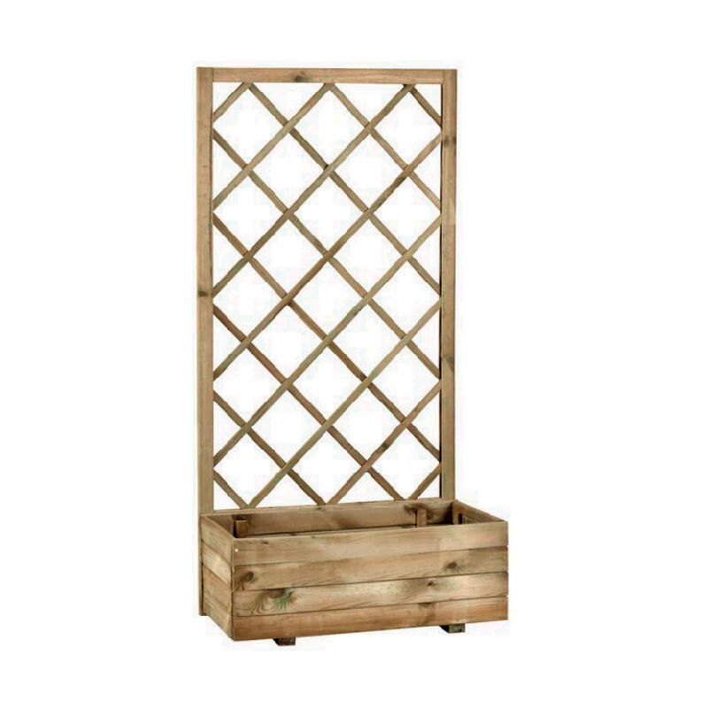 In di conifera impregnato con grigliato rettangolare sezione cornice 4X2,4 cm, maglia diagonale 13,5x13,5 cm. Dimensioni 70x35xh140 cm.