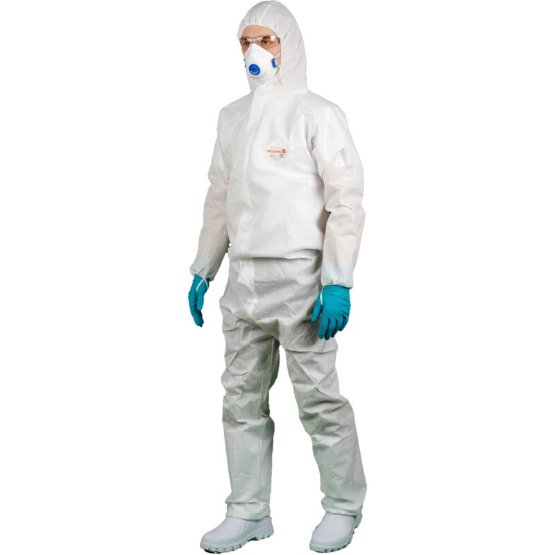 La tuta OxyChem C210 fornisce una protezione chimica limitata* di tipo 5/6. È realizzato in tessuto laminato con film microporoso (MPFL) dal peso di 63 g/m2. Strato esterno: pellicola di polietilene, strato interno: fibre di polipropilene, resistente alla penetrazione di agenti infettivi. OxyChem C210 offre anche protezione contro le polveri radioattive e ha proprietà antistatiche. La sua struttura è stata progettata per fornire all'utente i massimi livelli di sicurezza, ergonomia e comfort durante il lavoro. Proprietà: Spunbond laminato con film microporoso (MPFL). m2 Cappuccio in tre pezzi Cerniera a doppio cursore con patta in tessuto Taglio in due pezzi sul cavallo Polsini, gambe, vita e cappuccio elastici Passante elastico per il pollice Cuciture overlock resistenti all'interno Conformità agli standard: EN 13034:2005+A1:2009EN ISO 13982-1:2004+ A1:2010EN 1073- 2:2002EN 1149-5:2008EN 14126:2003+AC:2004EN 14325:2004EN ISO 13688:2013 DPI di categoria 3**
