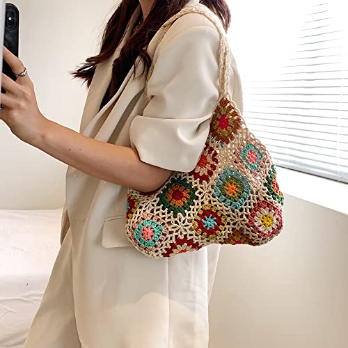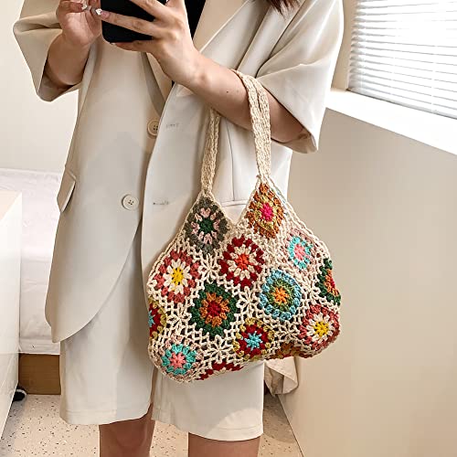 Fiorky Borsa a tracolla da donna all'uncinetto cava a maglia Boho estate spiaggia floreale borsa, Beige