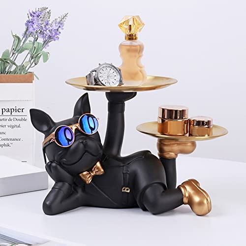 Fiorky Vassoio Portaoggetti per Statue di Bulldog,Figurine d'Arte Bulldog con Portachiavi in Resina per Pallet Figurine Ingresso Artigianato Caramelle Varie con Vassoio Portaoggetti Statue