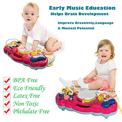 Fiouni 5 in 1 Baby Musical Toys for Kids,Set di Batteria per Pianoforte Multifunzione Sviluppo Iniziale Giocattoli Musicali educativi Regalo per Ragazze dei Ragazzi 12 Mesi in su (Rosso)