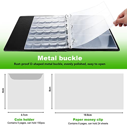 Fippy Album da Collezione di Monete e Banconote, compreso 150 Tasche Raccoglitore Monete da Collezione und 24 Tasche Porta Banconote da Collezione, per Collezionare Monete Banconote (nero)