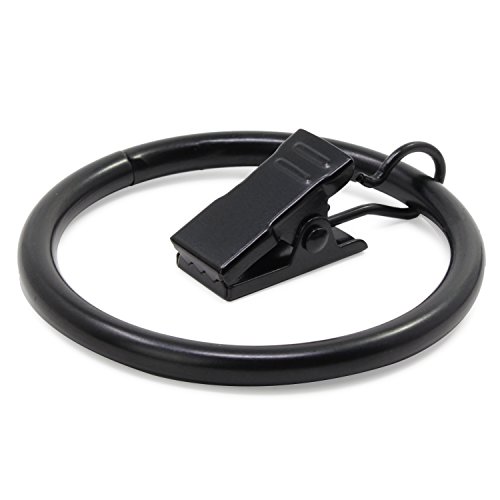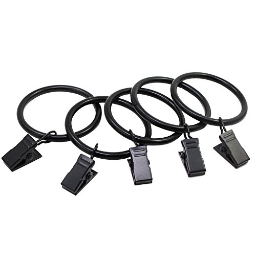 Fippy 20 Pezzi Anelli per Tende con Ganci, Anelli per Tende Neri in Metallo, Anelli per Tende con Clip per Tende e Canne, 38mm Diametro Interno