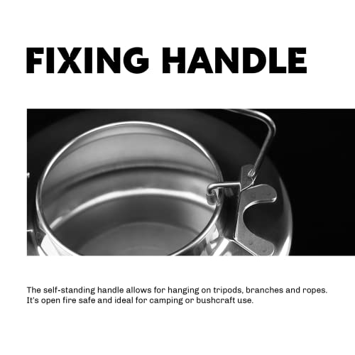 SICUREZZA: tutta la construzione in acciaio garantisce l'uso sicuro sul fuoco da campeggio, stufa da campeggio. Prestare sempre la attenzione quando si sposta o si versa un bollitore caldo. Fare attenzione a non bollire a secco.
