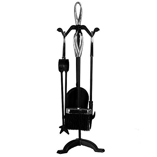 Fire Vida Buxton Companion Set, Metallo, Nero/Nichel, 5 Pezzi, Acciaio, H 62 x W 23 cm Circa