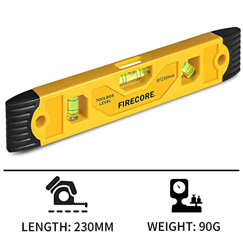 Firecore Livella a bolla, Livella Torpedo magnetica da 230mm, con 3 bolle (FSL230PC)