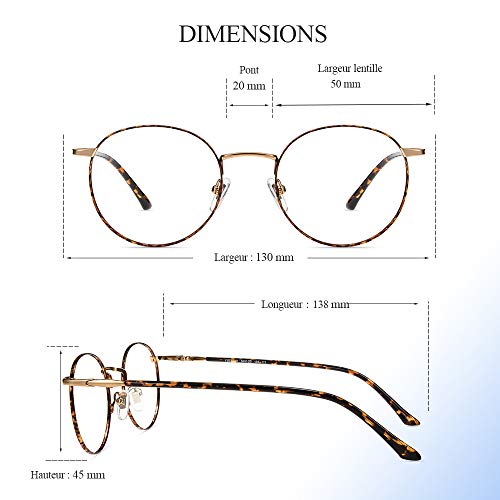 DIMENSIONE DEL PRODOTTO - Larghezza della montatura: 130 mm, Ponte: 20 mm, Asta: 138 mm, Altezza della lente: 45 mm. Gli eleganti occhiali da vista rotondi sono adatti sia per uomini che per donne.