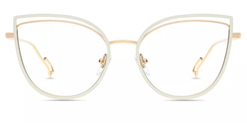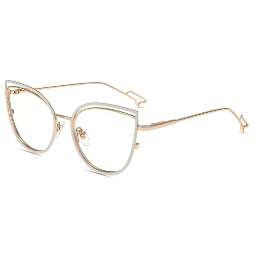 PESO LEGGERO E ALLA MODA - Gli occhi di gatto occhiali con blocco di luce blu hanno un'elegante montatura in metallo con cerniera a molla, comoda e super leggera. Indossare a lungo termine senza stress, adatto per donna.
