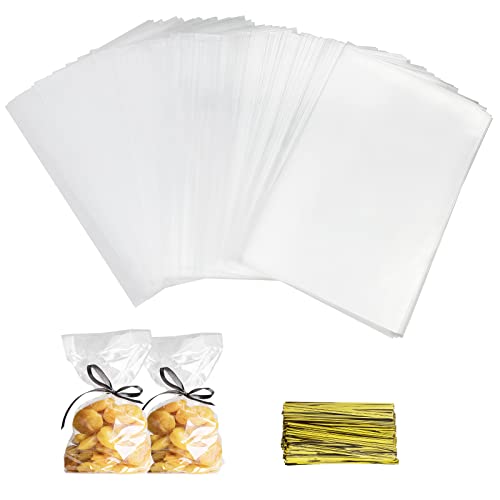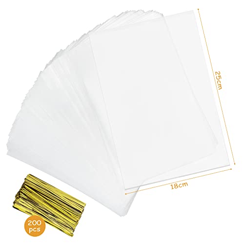 Firschoie 200 pezzi Sacchetti trasparenti per caramelle,Sacchetti Cellophane borsa quadrata trasparente, Sacchetto, per avvolgere biscotti dolciumi per torte al cioccolato (18 x 25 cm)