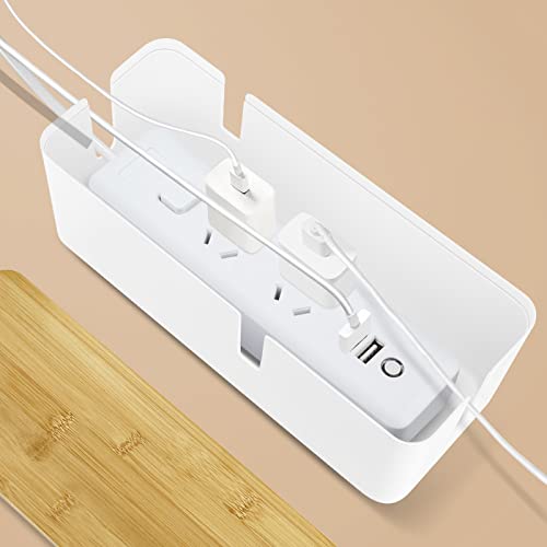 Firschoie Scatola di gestione per nascondere I cavi sciolti, con coperchio in bambù, immagazzinaggio del filo, Organizza il cablaggio del computer (Bianco)