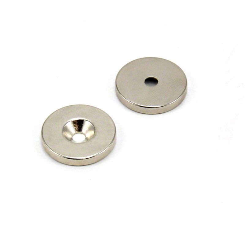 Calamite al neodimio First4magnets N42 (NdFeB). Il polo positivo e quello negativo si trovano sui lati opposti di forma tonda e piatta di ciascun magnete. Magneti rivestiti con 3 strati di nichel, rame e ancora nichel, per ridurne la corrosione e fornire una finitura liscia e pulita. In confezione a marchio first4magnets con etichetta di avvertenza applicabile (lingua italiana non garantita). Scheda tecnica di sicurezza inclusa nell'ordine (lingua italiana non garantita). Questi versatili magneti a svasatura sottile da first4magnets sono ideali per creare raffinati fermi magnetici per porte di armadietti, come anche per mantenere in posizioni i pannelli rimovibili della vasca da bagno e per molti altri usi. Sebbene con appena 3 mm di spessore, queste calamite sono in grado di supportare 4,5 kg in posizione verticale o 0,9 kg in posizione di taglio, quando a contatto diretto con altro magnete o superficie in acciaio. Sono disponibili con l'uno o l'altro polo sulla faccia magnetica in