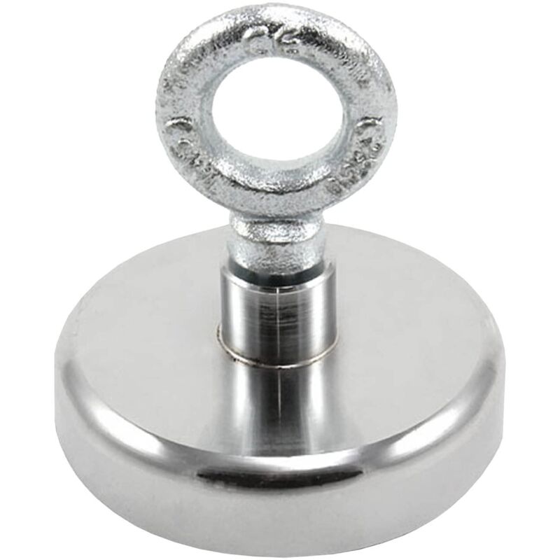 80 mm di diametro x 70 mm di altezza, compreso il sopracciglio M10. Tolleranza del 2% Ogni magnete può sostenere 60 kg verticalmente dalla faccia magnetica quando è in contatto con una superficie in acciaio dolce di uguale spessore. Guscio protettivo e resistente in acciaio cromato. Resistente occhiello M10 con diametro interno di 20 mm (carico di lavoro sicuro 140 kg) Questi grandi magneti in ferrite sono fatti di un magnete in ferrite affondato su un guscio in acciaio cromato, il che significa che il polo nord si trova al centro della faccia magnetica e il polo sud è sul bordo esterno intorno ad esso. La pentola in acciaio aumenta la forza adesiva dei magneti dando loro una presa incredibile per le loro dimensioni. Ogni magnete viene assemblato con un oculare resistente che può facilmente ospitare un accappatoio o un cavo di sollevamento spesso. Un ulteriore vantaggio dei magneti per pentole è che sono resistenti a scheggiature o screpolature dopo un impatto costante con una