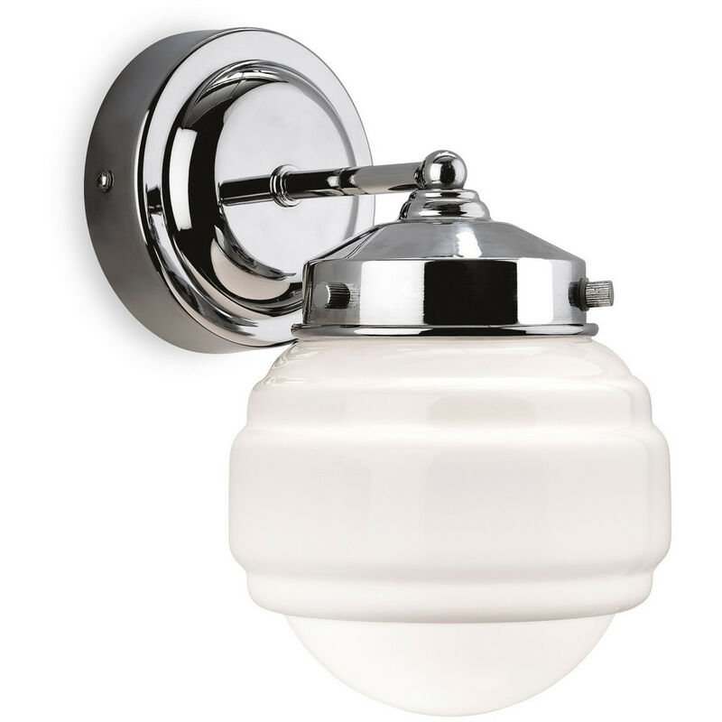 Firstlight Art - Applique da interno per bagno a 1 luce Cromo, Vetro bianco opalino IP44, E27 | Finitura: vetro bianco opalino, cromo | Classificazione IP: IP44 | Altezza (cm): 23 | Larghezza (cm): 13,5 | Sporgenza (cm): 18 | Numero di luci: 1 | Tipo di lampada: E27 | Potenza (max): 42