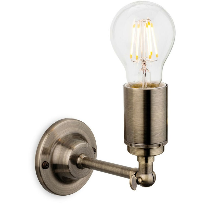 Firstlight Indy - Lampada da parete a candela da interni 1 luce in ottone antico, E27 | Finitura: ottone antico | Classificazione IP: IP20 | Altezza (cm): 14 | Larghezza (cm): 8.5 | Sporgenza (cm): 15 | Numero di luci: 1 | Tipo di lampada: E27 | Potenza (max): 60
