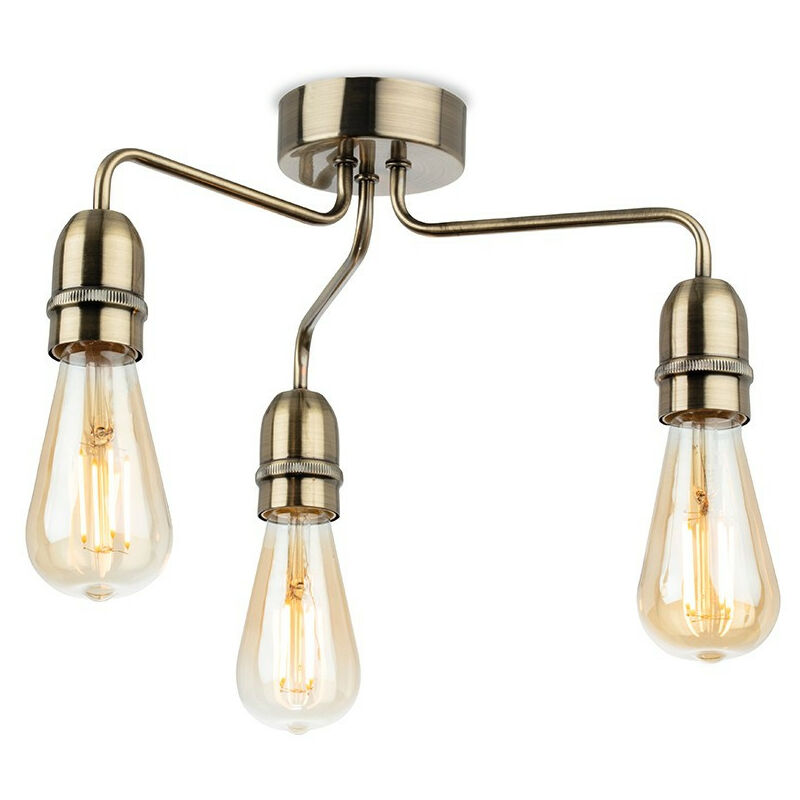 Firstlight Leon Montaggio a soffitto industriale a 3 luci in ottone anticato | Finitura: ottone antico | Diametro (cm): 36,00 | Tipo di lampada: E27 | Numero di luci: 3 | Classificazione IP: | Lampadina inclusa: No