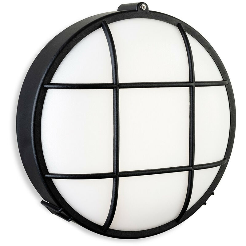 Firstlight Lewis Paratia LED in Resina - Rotonda Nera con Diffusore in Policarbonato Bianco IP44 | Finitura: nero con diffusore in policarbonato bianco | Classificazione IP: IP44 | Proiezione: 9 cm | Diametro: 22 cm | Tipo di lampada: LED integrato | N. di lampade: 1 | Lampadina inclusa: Sì | Kelvin: 3000 K | Lumen: 450lm | Potenza (massima): 9W