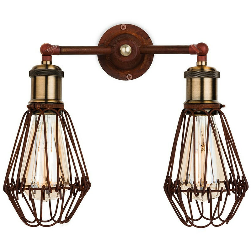 Firstlight Arcade - Gabbia da parete a 2 luci marrone rustico chiaro, E27 | Finitura: marrone rustico | Classificazione IP: IP20 | Altezza (cm): 26 | Larghezza (cm): 35 | Sporgenza (cm): 14 | No. di luci: 2 | Tipo di lampada: E27 | Potenza (max): 60 | Peso (kg): 1,29 | Lampadina inclusa: no