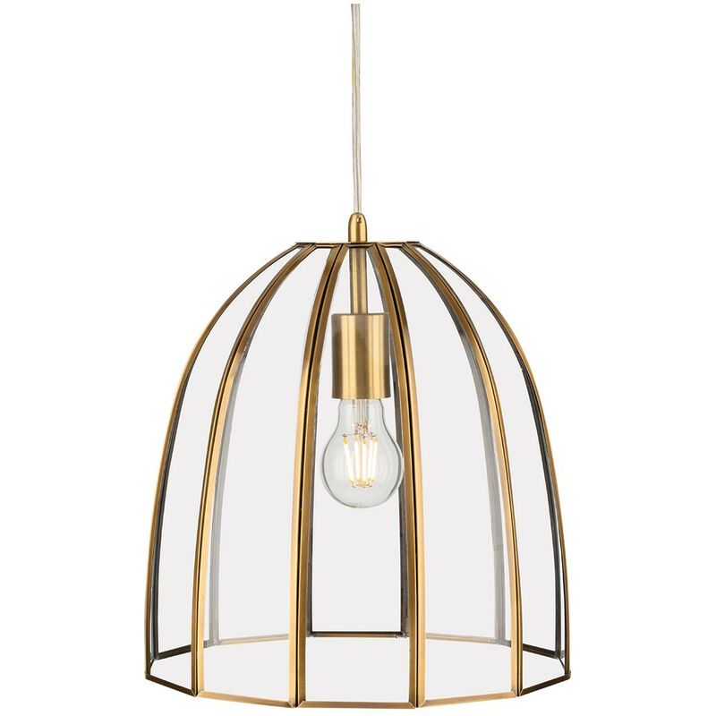 Firstlight Lincoln Lampada a sospensione in ottone anticato con vetro trasparente | Finitura: Ottone Antico con Vetro Trasparente Altezza (cm): 31.00 | Altezza massima (cm): 150,00 | Diametro (cm): 30,00 | Tipo di lampada: E27 | Numero di luci: 1 | Classificazione IP: | Lampadina inclusa: No