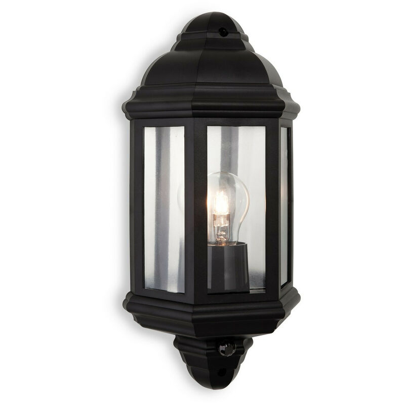 Firstlight Park - Lanterna da parete 1 luce per esterno con pir policarbonato nero IP44, E27 | Finitura: nero | Classificazione IP: IP44 | Altezza (cm): 36 | Larghezza (cm): 17,5 | Sporgenza (cm): 9.5 | Numero di luci: 1 | Tipo di lampada: E27 | Potenza (max): 42