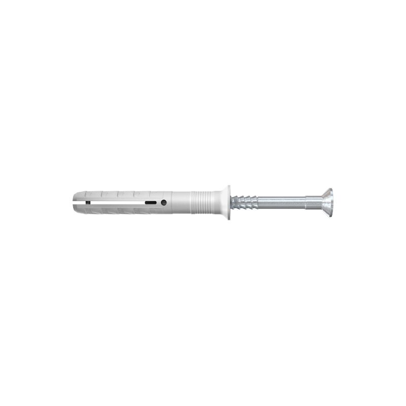 Il fischer Hammerfix NS con testa svasata è costituito da un tassello in nylon di alta qualità e da una vite per chiodi elettrogalvanizzata. Sono già assemblati per un montaggio rapido. Il tappo di chiusura viene inserito attraverso il componente nel supporto a passaggio rapido. Quando si colpisce la vite del chiodo, il manicotto del tassello si espande e si ancora saldamente al componente. Il fischer Hammerfix NS con testa svasata è ideale per il fissaggio di strutture in legno su tutti i componenti interni.