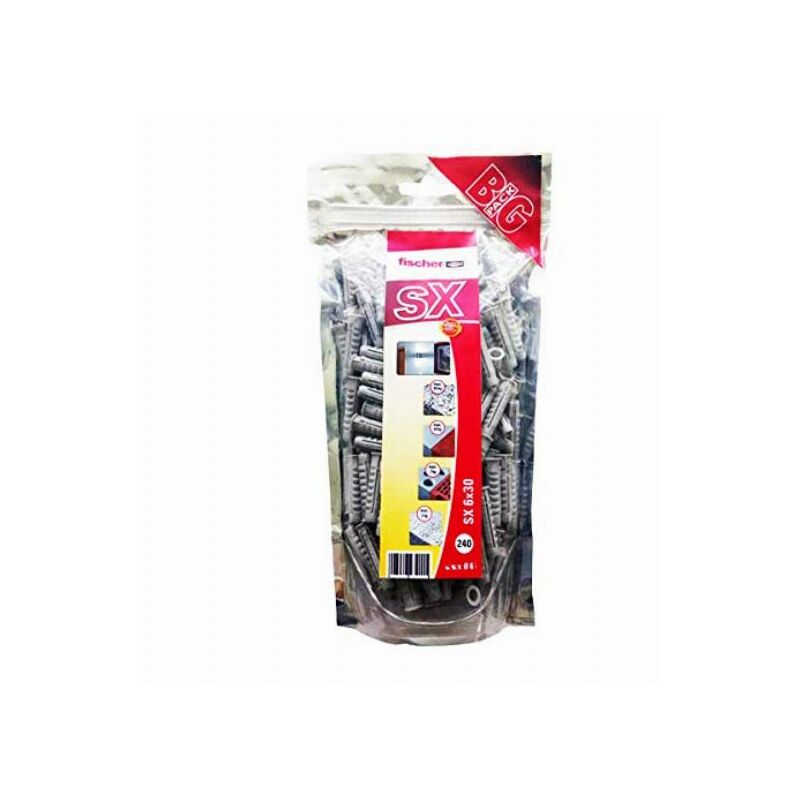 Fischer big pack busta di tasselli sx 6 formato convenienza vantaggi: fischer big pack è la busta di tasselli formato convenienza, richiudibile, trasparente e resistente, specifiche tecniche: contenuto: 240 tasselli fischer sx 6, diametro: 6 mm, lunghezza: 35 mm, riferimenti: ean: 4048962234015 codice fischer: 534609.
