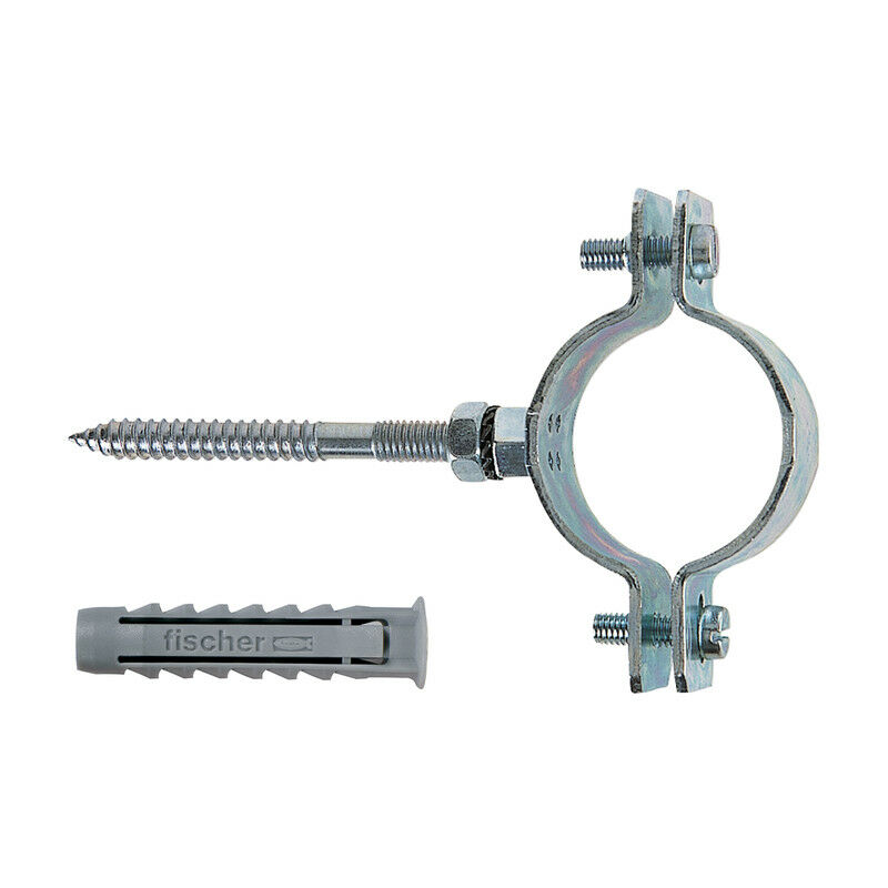 Collare pesante per tubi CPS-V 1/2 - 520993 Vantaggi CPS-V completo di vite e tassello SX. Fascia di dimensione maggiorata. Dado con quattro punti di saldatura anche nelle misure piccole. Applicazioni Sostegno di tubi in metallo Funzionamento Forare, inserire il tassello ed espanderlo con la vite a doppia filettatura. Avvitare il collare. La confezione comprende 2 pezzi