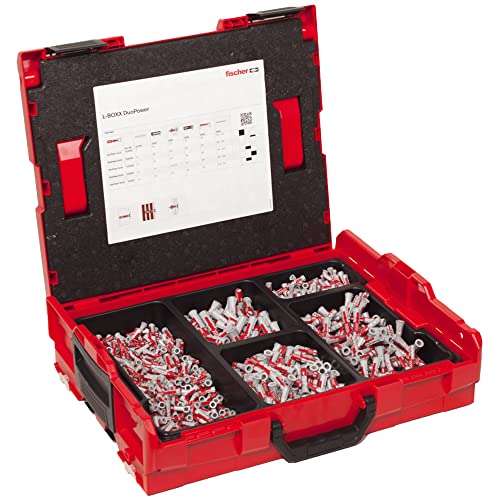 Fischer Duopower L-Boxx 560492, Valigetta Attrezzi, Assortimento Tasselli Duopower, Duopower Lunghi, Tasselli per Cartongesso, Mattoni, Ø 6-8-10 mm Cassetta Resistente agli Urti e Impilabile, 910 pz