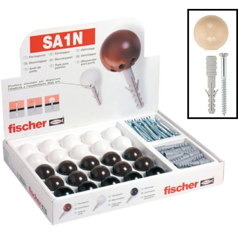 Fischer SA 1N Fissaggio fermaporta in espositore da banco SA 1N Specifiche tecniche: Contenuto: 10 x fermaporta bianco, 10 x fermaporta marrone, 5 x fermaporta nero, 25 x f issaggio S 8 T S, 25 x vite Ø 5,5 x 65 mm T SC POZI, Confezione: 1, Riferimenti: EAN: 8001132015216 Codice fischer: 501521