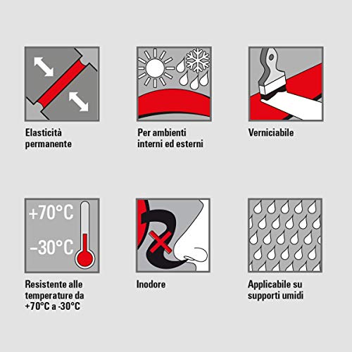 Elasticità permanente, ottimo per giunti, lattonerie, serramenti e parti soggette a movimento e vibrazioni
