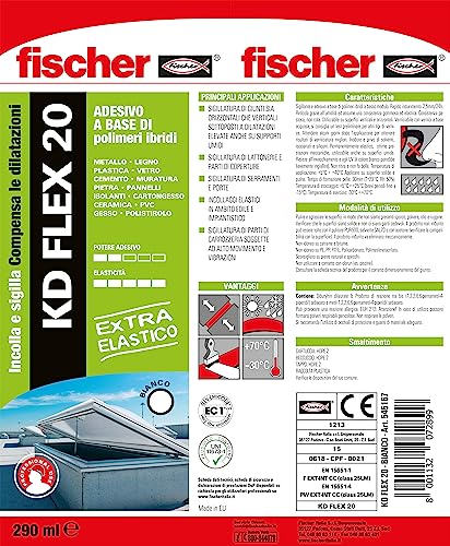 Fischer KD FLEX 20 Bianco, Sigillante adesivo per sigillatura e incollaggio di giunzioni soggette a dilatazioni, 290 ml, 541567