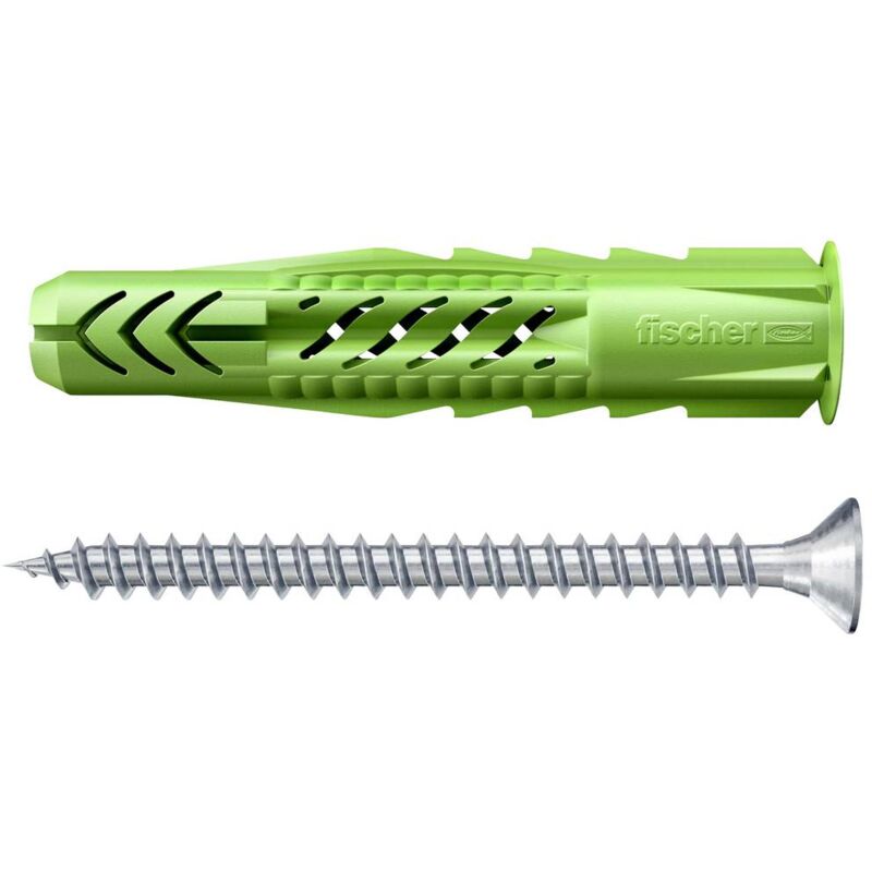 Dettagli tecnici Contenuto 1 KIT Diam. est. 8 mm Dimensione del prodotto, lunghezza 50 mm Dimensione, Ø 8 mm Dimensioni (Ø x L) 8 mm x 50 mm Materiale Plastica Tipo prodotto Tassello universale Tassello universale fischer UX Green 8 x 50 R S Il tassello universale fischer UX Green è un tassello in plastica in nylon di alta qualità. Il granulato per la produzione del tassello è ottenuto almeno per metà da materie prime rinnovabili. Questi non sono in concorrenza con le superfici coltivate per alimenti e alimenti per animali. UX Green ha le stesse caratteristiche di potenza e capacità di carico dell'originale. Il tassello universale fischer si espande nei materiali da costruzione pieni e si annoda nei materiali da costruzione forati e piatti per la massima tenuta. In questo modo il fischer UX è sempre la scelta giusta, anche in caso di materiali da costruzione sconosciuti. Il bordo impedisce che scivoli verso il basso durante il montaggio. Nella versione con bordo, il tassello