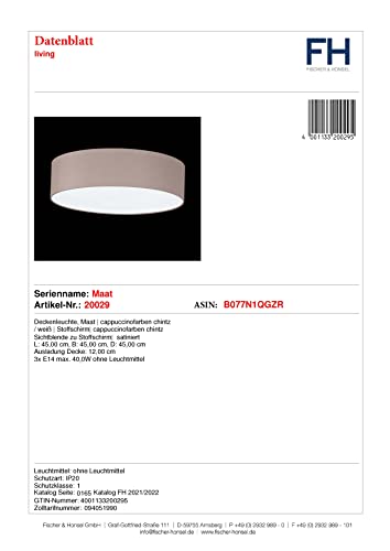 Fischer & Honsel Lampada da soffitto, 3 x E14 max.40 W, paralume Chintz cappuc, diametro 45 cm, colore: cappuccino 20029