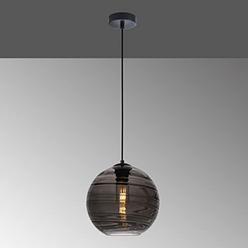 Fischer & Honsel Lampada a sospensione, Opie | nero opaco | cavo nero | vetro | grigio fumo | diametro 25 cm | Sporgenza del soffitto: 140,00 cm | 1 x E27 max. 60 Watt | 60664