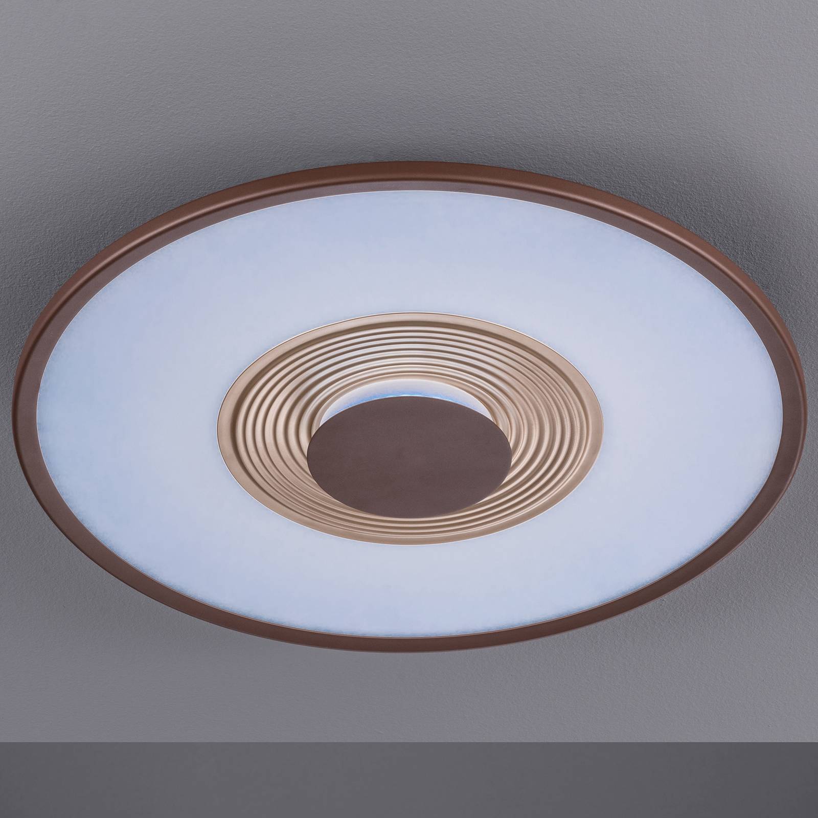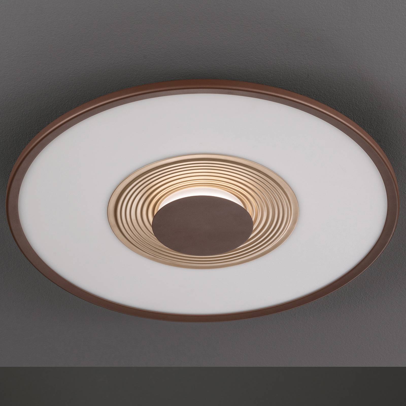 Versatile plafoniera LED Veit in marrone ruggine e oro con telecomando Armoniosa e accogliente nel design e flessibile nell'illuminazione, la plafoniera LED rotonda Veit offre una combinazione di metallo color ruggine e oro che si adatta a molti stili di arredamento e ambienti. Grazie alla funzione CCT e dimming, che può essere comodamente controllata con il telecomando in dotazione, offre un'illuminazione flessibile. Il colore di luce può essere regolato liberamente da bianco caldo a bianco luce diurna e la luminosità è regolabile in continuo. Questa flessibilità consente di utilizzare la plafoniera in qualsiasi stanza e ambiente.