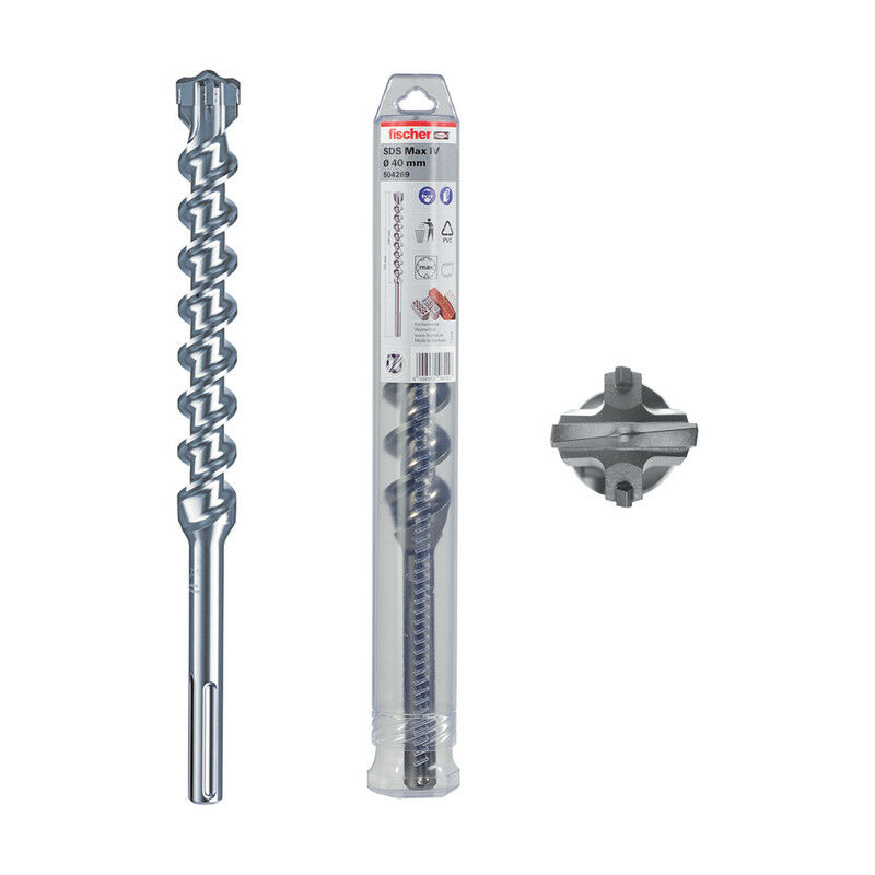 Punta martelli perforatori Punta martelli perforatori SDS Max IV 22/400/520 Punta per calcestruzzo SDS Max II / SDS Max IV Punta per martelli perforatori pesanti a 2 o 4 taglienti, con spirale ad alta capacità di scarico e attacco SDS Max Vantaggi: L'attacco SDS Max garantisce un ottimo trasferimento della forza e permette una rapida foratura quando si devono realizzare numerosi fori. La punta con quattro taglienti evita il grippaggio quando si incontrano barre di armatura nel calcestruzzo. Usura ridotta: il corpo a quattro spirali rimuove in modo affidabile la polvere dal foro. Il corpo rinforzato garantisce il massimo trasferimento di energia e una foratura a basse vibrazioni. Conforme ai più severi standard di sicurezza: le punte marcate PGM® certificano tolleranze precise sulla geometria della punta, garantendo così una perfetta calibrazione del foro fatto e quindi una ottima tenuta dei tasselli Punta a 4 taglienti in carburo. Testa in metallo rinforzata saldata sull'elica.