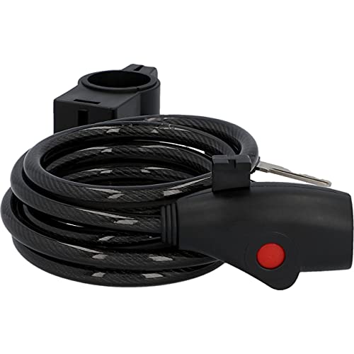 Cavo a spirale rigido e flessibile con robusto cilindro di bloccaggio. Multiuso, non solo in bicicletta. Con supporto per telaio